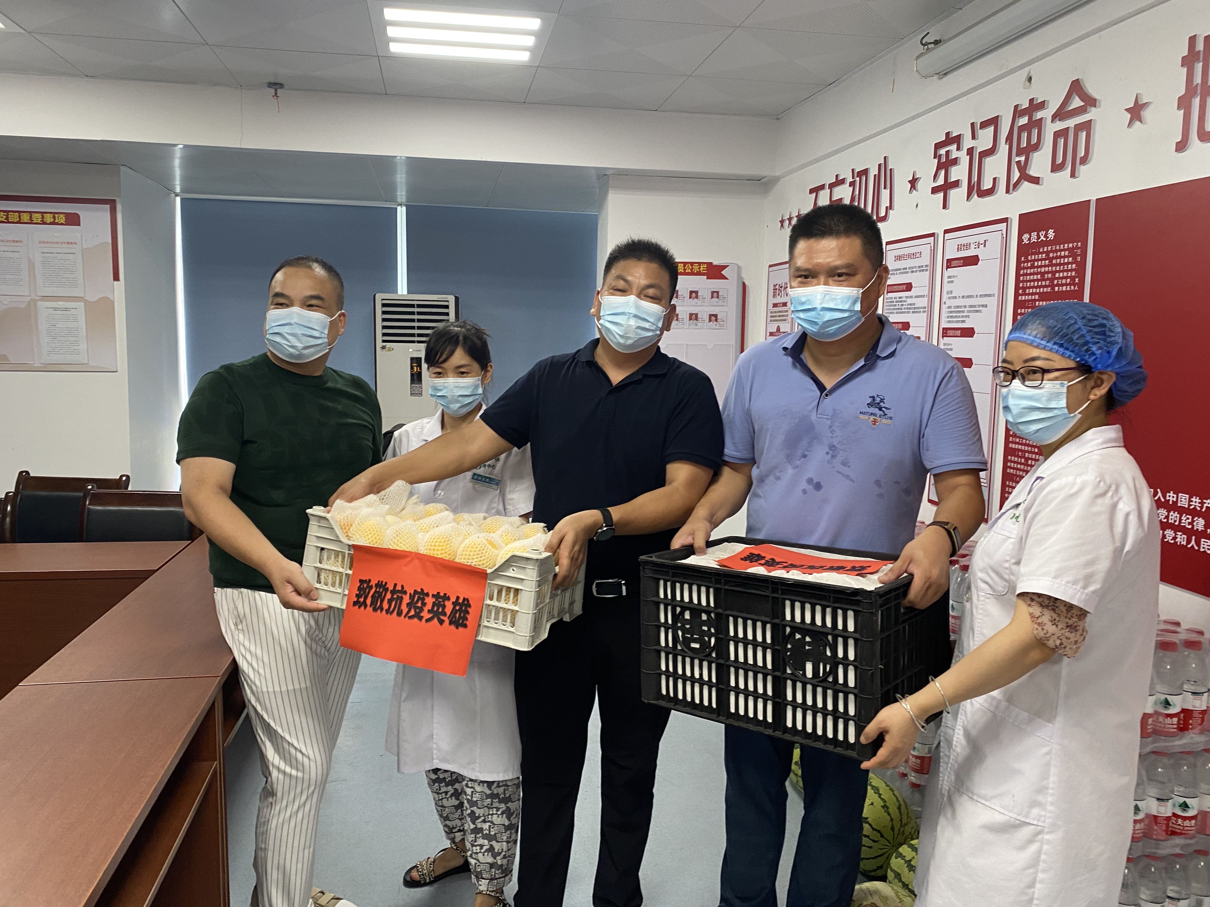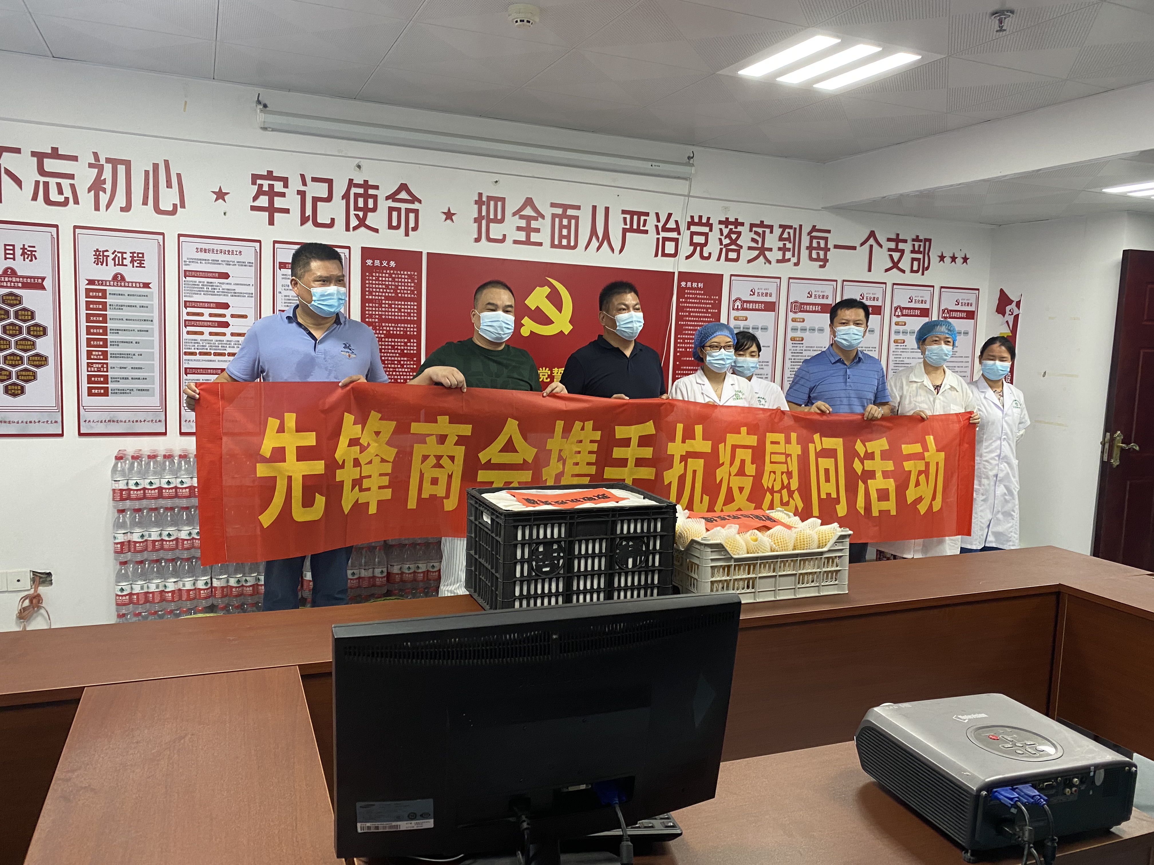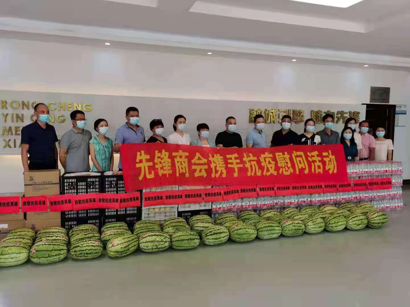 我公司董事长龙发叶先生,作为先锋街道商会的会长,积极响应街道商会号召,积极参与先锋街道商会举办的“先锋商会携手抗疫慰问活动”,与商会其他会员单位一起,共同向街道、社区(村)、街道卫生服务中心抗疫一线工作人员捐赠酒精、苹果、黄桃、西瓜、矿泉水等1万多元物资,炎炎夏日送去关怀慰问。以表达我公司对抗疫一线的工作人员崇高的敬意。